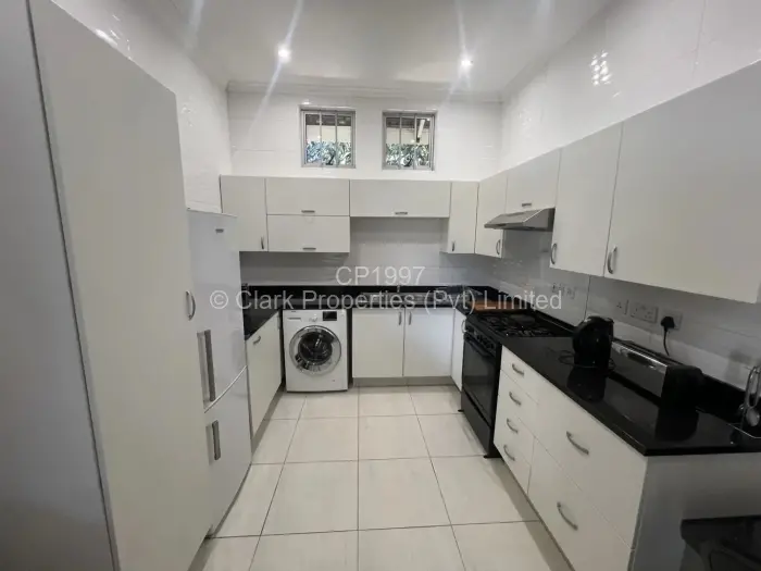 The kitchen is fully equipped with a gas stove, fridge, microwave, kettle, toaster, and washing machine. The unit is fully furnished and fitted with modern amenities including WIFI, solar power, an inverter, and a diesel generator, ensuring comfort during power outages.