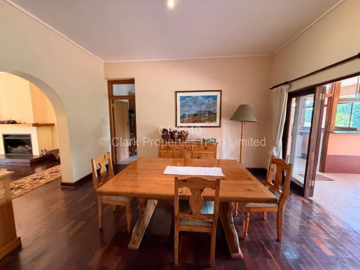 Staff quarters provide four bedrooms, separate ladies and gents toilets, a kitchen, and geyser powered by ZESA. A charming cottage complements the main house, featuring an open-plan lounge and kitchenette with built-in cupboards and a bedroom ensuite with bath.