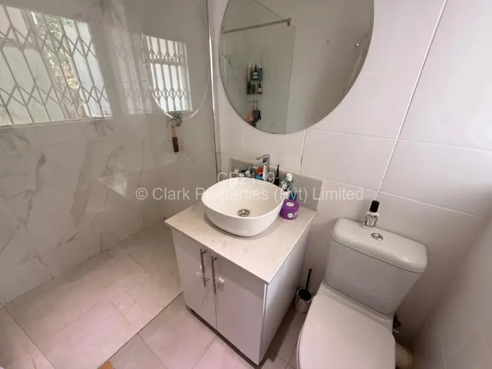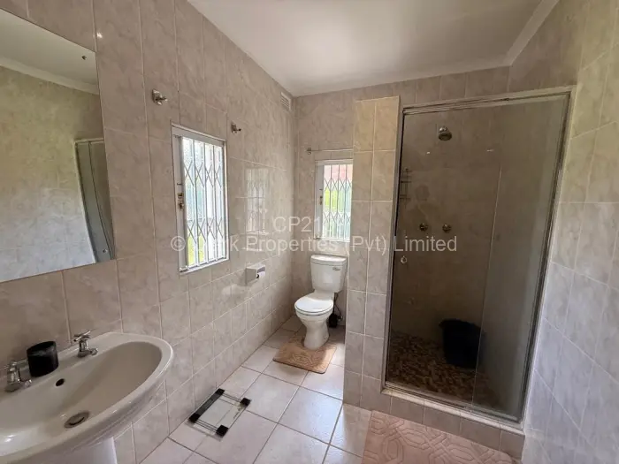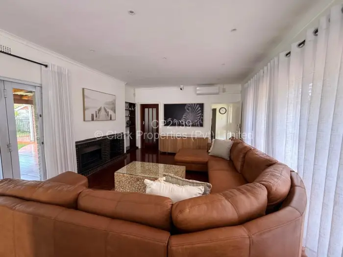 The home is supported by solar backup with 5kVA batteries, generator change-over switch, four solar geysers, a borehole, and three 5000-liter water tanks, one of which is gravity-fed. It has a big manicured garden, double lock-up garage, a washroom, a storeroom, and double staff quarters. Security features include sensors, alarms, an electric gate, an electric fence, security gates and an intercom. For recreation, there is a rumpus room, a swimming pool, and a tennis court.