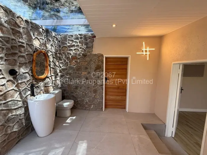 Clark Properties is proud to present this beautifully designed office space in a professional yet tranquil environment. The first building features two spacious offices and a modern bathroom with a stylish stone wall and glass windows. A large verandah overlooking the pool offers a perfect retreat for breaks or informal meetings. There is a pathway that leads to a second building with two additional smaller offices.