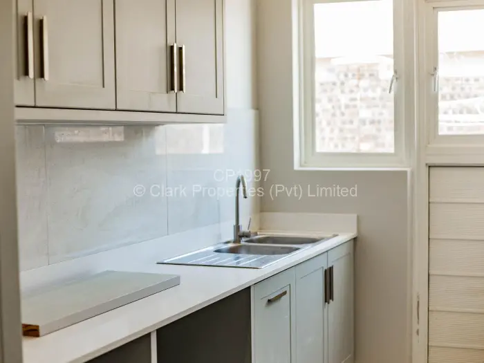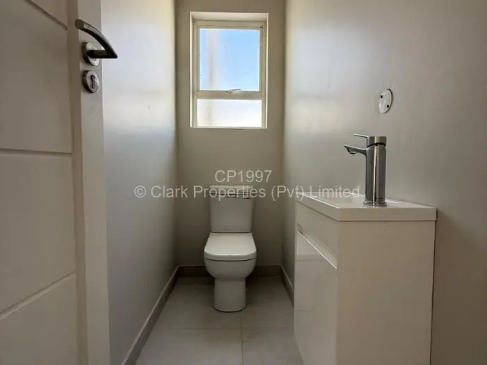 Attached to the townhouse is a self-contained room which can be used as a guest room or as a staff quarter. There is also a complex borehole, solar geyser, 5KVA solar system with batteries, 5,000 liters water storage, prepaid ZESA meter, WIFI connection and a double carport. The property is secure with a 24-hour guard stationed at the gate, electric gate, and an electric fence.