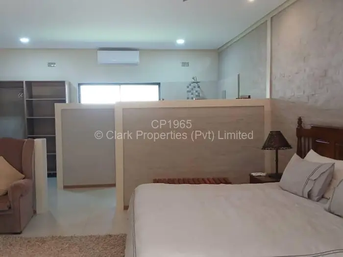 The master suite is enhanced by a walk-in closet, creating a private and luxurious retreat. Additional conveniences include air conditioning, an alarm system for peace of mind, and quality finishes throughout. Outside, the beautifully landscaped garden creates a tranquil setting where guests or owners can enjoy the unique surroundings. The secure, well-fenced property includes an electric gate, carports, and water tanks for everyday convenience and reliable functionality. With title deed ownership and outstanding potential for short-term rentals, tourism accommodation, or comfortable family living, this is a rare opportunity to secure a premium property in Victoria Falls.