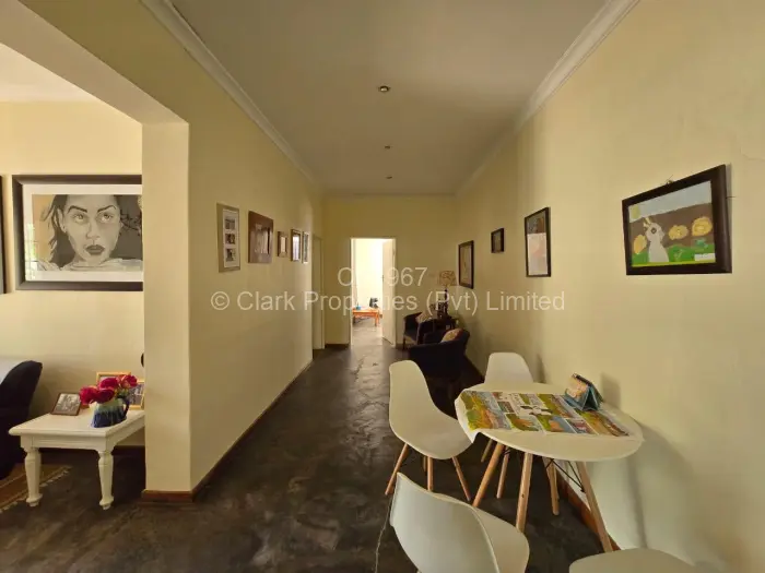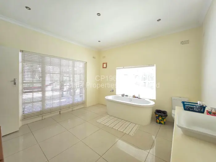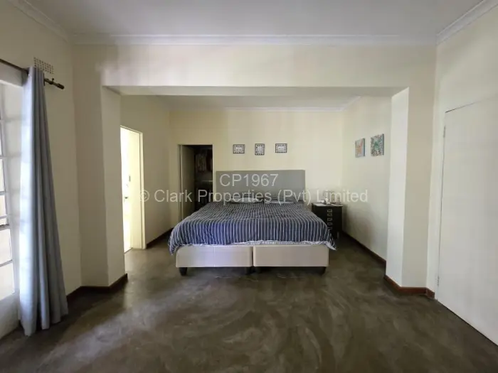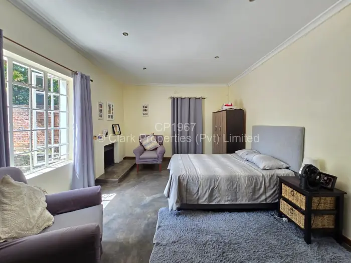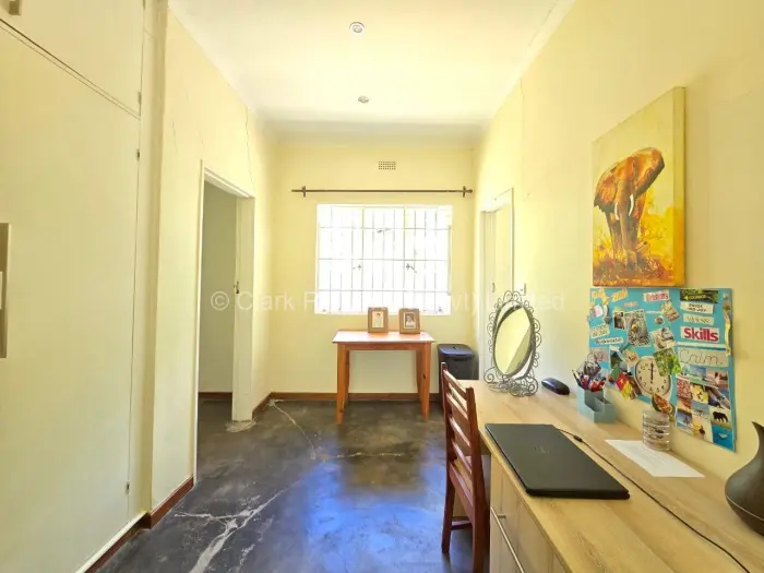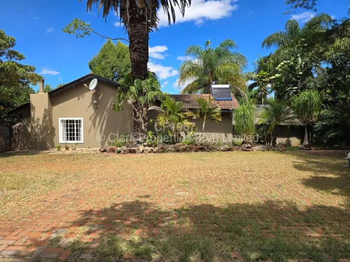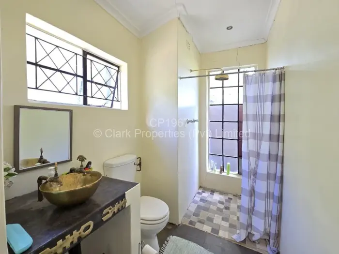 The main residence features three bedrooms. Two bedrooms share a bathroom with a shower, toilet, and basin, while the main bedroom includes a walk-in cupboard and a spacious en suite bathroom with a bath, toilet, and basin. The lounge and dining area are open-plan, creating an easy flow, and the kitchen is complemented by a walk-in pantry.
