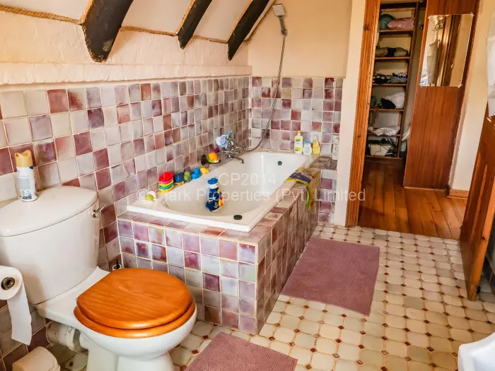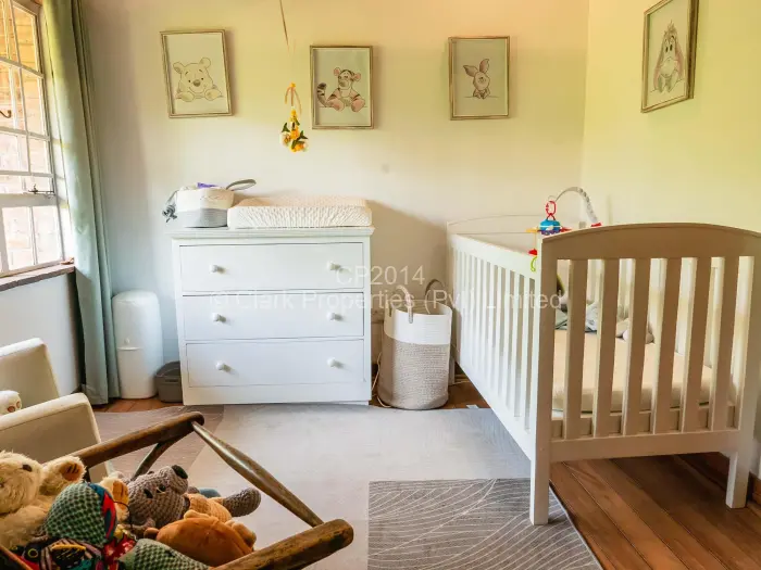 Set on 1 acre of land, this double-story home is set in a quiet, established suburb. Nestled among beautiful msasa trees is a charming open-face brick home. With its cromadeck roofing and elevated position, it peaks above the tree line. This residence exudes warmth and character. It offers both an intimate family life as well as lends itself to entertaining. The main house offers comfortable family living with two good-sized bedrooms downstairs sharing a full bathroom. The lounge is fitted with a fireplace, which is a defining feature of the downstairs area, lending character to the space. The lounge then opens up into a sunroom/dining area. The kitchen is complete with a scullery and a large pantry