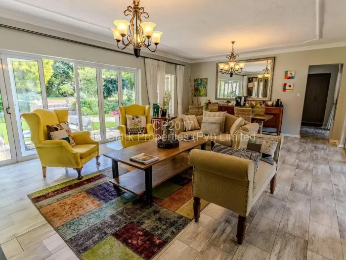 Functionality meets sustainability with a robust 180,000 litre water tank, seasonal borehole, solar and gas geysers, inverter system, and a powerful 14kVA generator. The property is fully walled, secured with an electric gate, triple staff quarters and offers ample parking space.