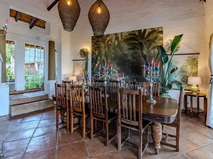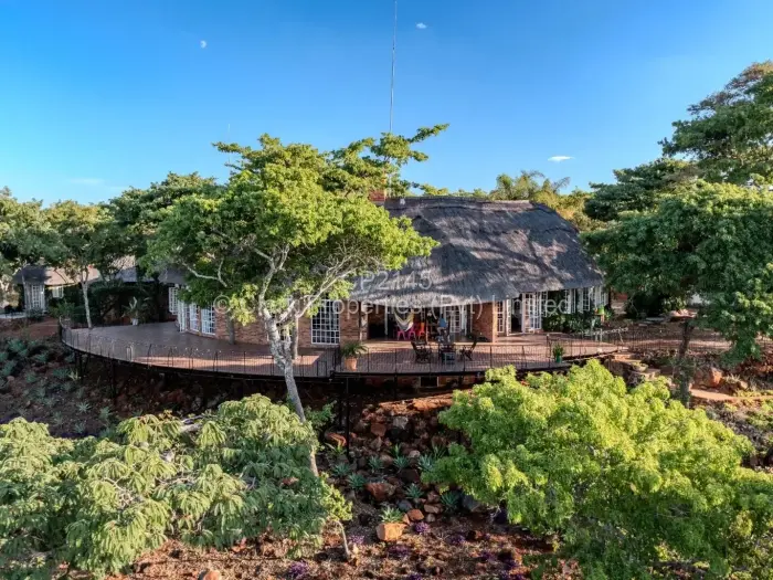 This absolutely gorgeous residence sits on a 5-acre estate of stunning terrain, offering the best views in Harare. Beautifully perched on Hugh William Drive in phase one of the Shawasha Estate. The architecturally designed building can either be a grand home or an ideal business opportunity as a functions venue and boutique hotel, providing the country vibe whilst still being within close proximity to city amenities. An elaborate courtyard welcomes you before entering into the quirky (yet sophisticated) decorated spaces flowing out onto an expansive 220 square meters of teak deck with panoramic views to die for.